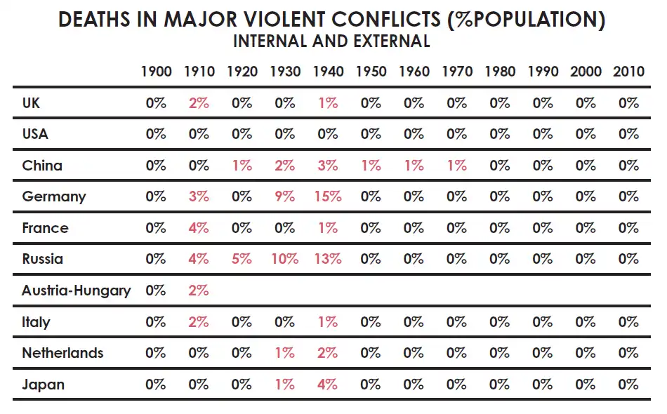 1900 年之前所有循环中糟糕的部分都同样糟糕。更糟糕的是,这些围绕财富和权力的内外争斗时期导致了大量死亡。
