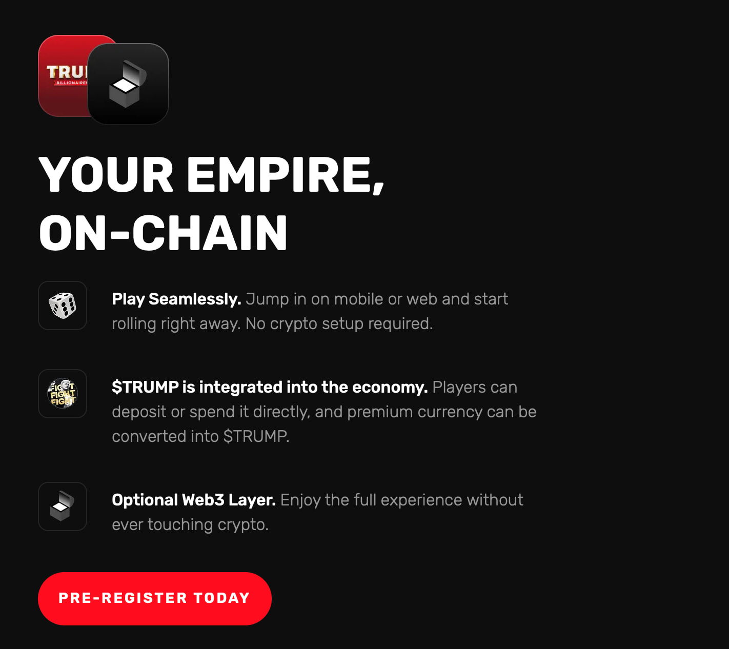 2025年12月11日 星期四——一款以美国总统唐纳德·特朗普命名的新加密游戏引发了Web3领域的广泛关注,但细察之下会发现其运作模式与传统区块链游戏大相径庭。据报道玩家可完全绕过加密元素,这使其更像披着Web3外衣的传统Web2游戏,而非基于区块链技术构建的全新产品。