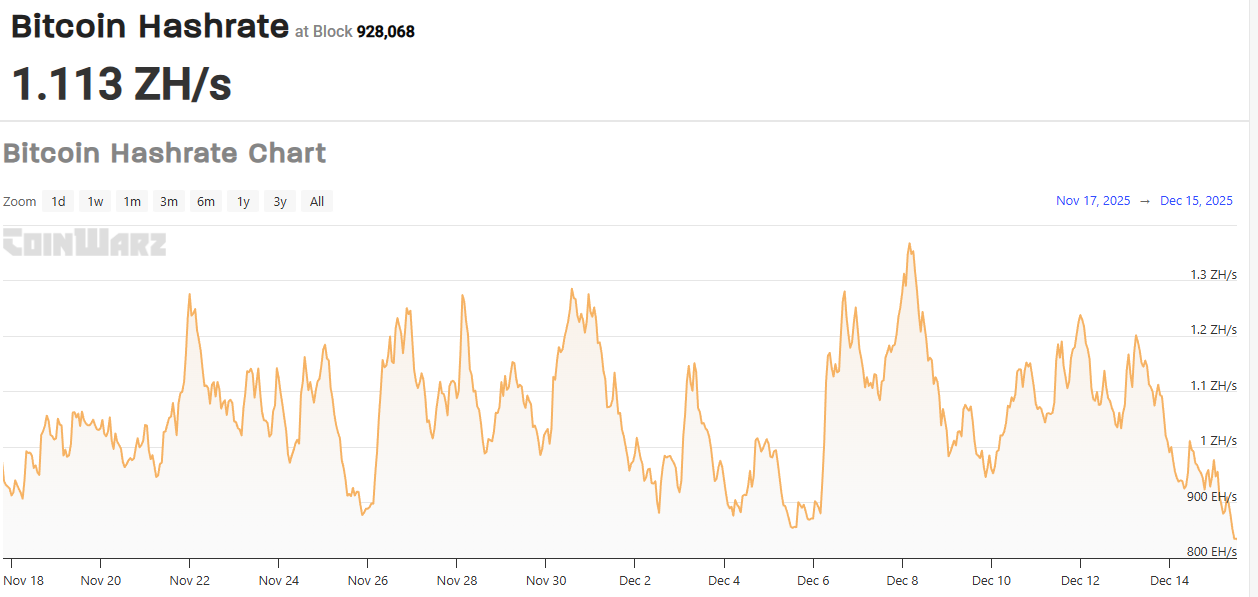 最常被引用的一种估算来自矿业圈的工程师算法:以当代主力机单机约 250 TH/s 粗算,若有 40 万台陆续停机,对应的算力缺口足以让全网出现百 EH/s 级别的回落。也有人把更激进的算力点位写得更直白:全网算力一度从接近 1200 EH/s 下探到 836.75 EH/s 左右,跌幅接近三成。不同平台、不同口径对“最低点”并不完全一致,但一个事实很难被忽略:这不是几家矿场“关几排机柜”的波动,而是一轮覆盖面很广的集中停机。