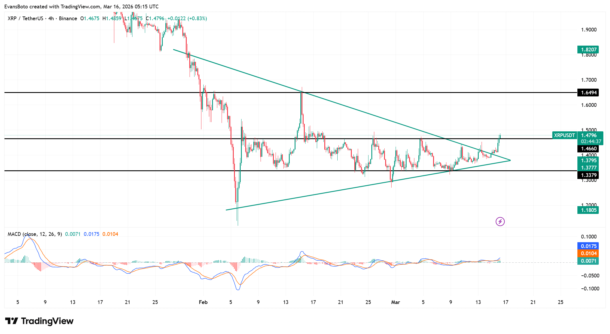 瑞波币(XRP)已突破束缚价格走势数周的对称三角形形态。