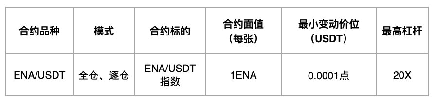 您好!火币HTX已上线USDT本位合约:ENA/USDT,支持1-20倍做多和做空操作。