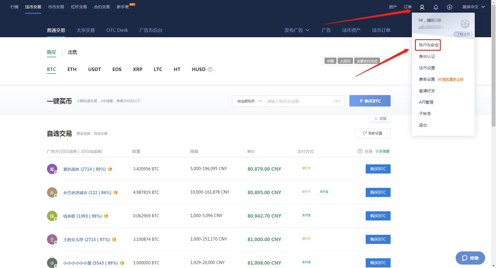 步骤一:点击通过网页右上方头像,选择进入“账户&安全”。