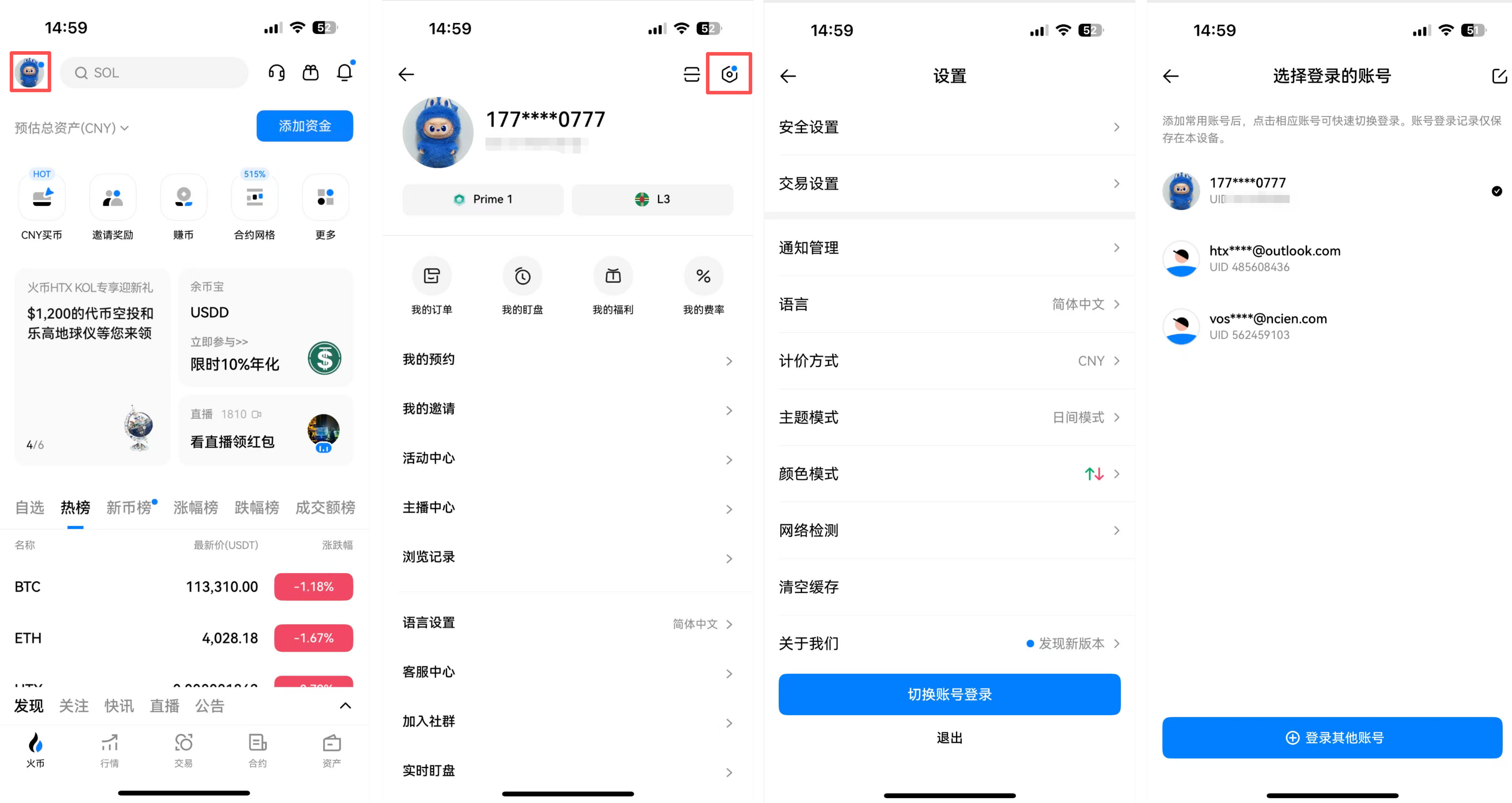 如何切换登录火币账号