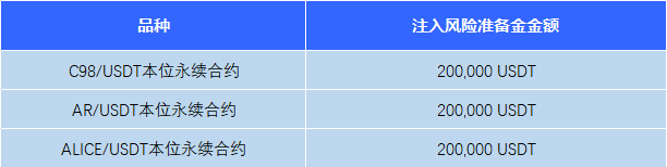同时为提升应对风险能力,给用户保驾护航。我们会为每个新上线品种注入额外的风险准备金,详情如下: