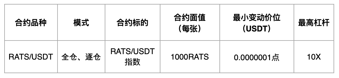 关于 RATS 品种 USDT 本位永续合约正式上线的公告