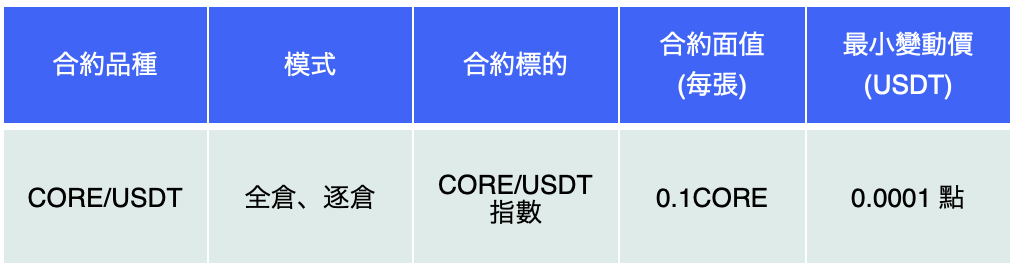HTX將於 2023 年 2 月 9 日 20:00 (GMT+8) 起推出 CORE 品種的 USDT 本位永續合約商品。USDT 本位永續合約品種要素要求如下: