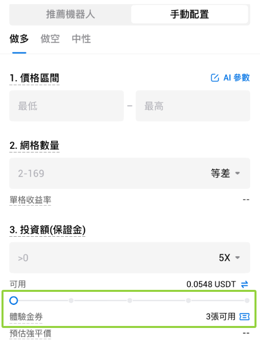 - 每個合約網格策略暫時只支援使用最多2張合約網格體驗金券