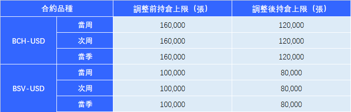 2.對以下幣本位交割合約品種的持倉上限進行調整,調整如下: