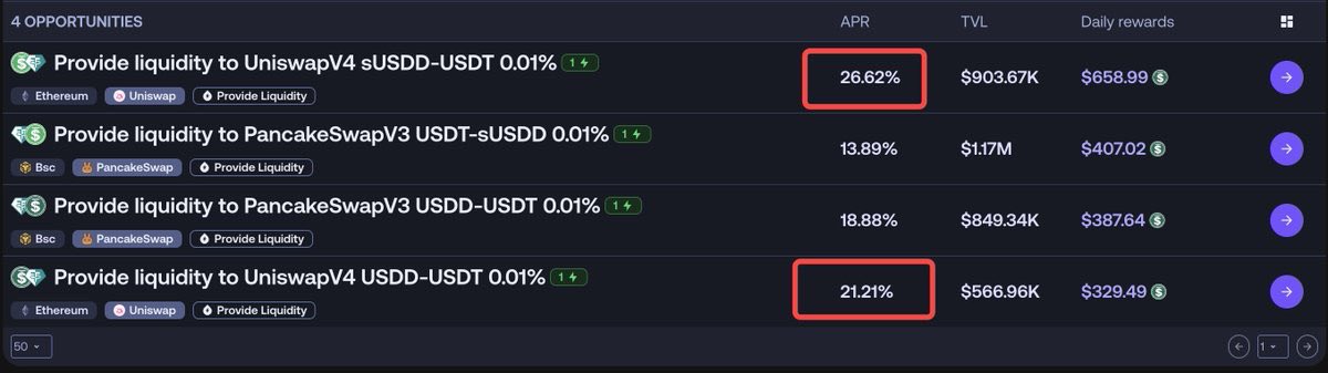 • sUSDD–USDT:26.62% APY + sUSDD约12%原生收益,双重红利叠加,收益直接拉满;