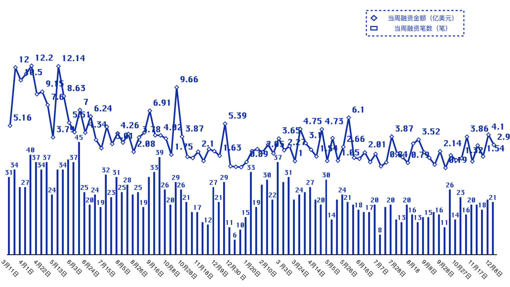 据 Foresight News 统计,12 月 2 日至 12 月 8 日期间,加密市场共发生 21 笔投融资事件,其中工具和基础设施 8 笔、 DeFi 领域 5 笔、资管领域 2 笔、链游和 NFT 领域 3 笔、Web3 领域 3 笔。已披露投融资总金额约 2.90 亿美元。