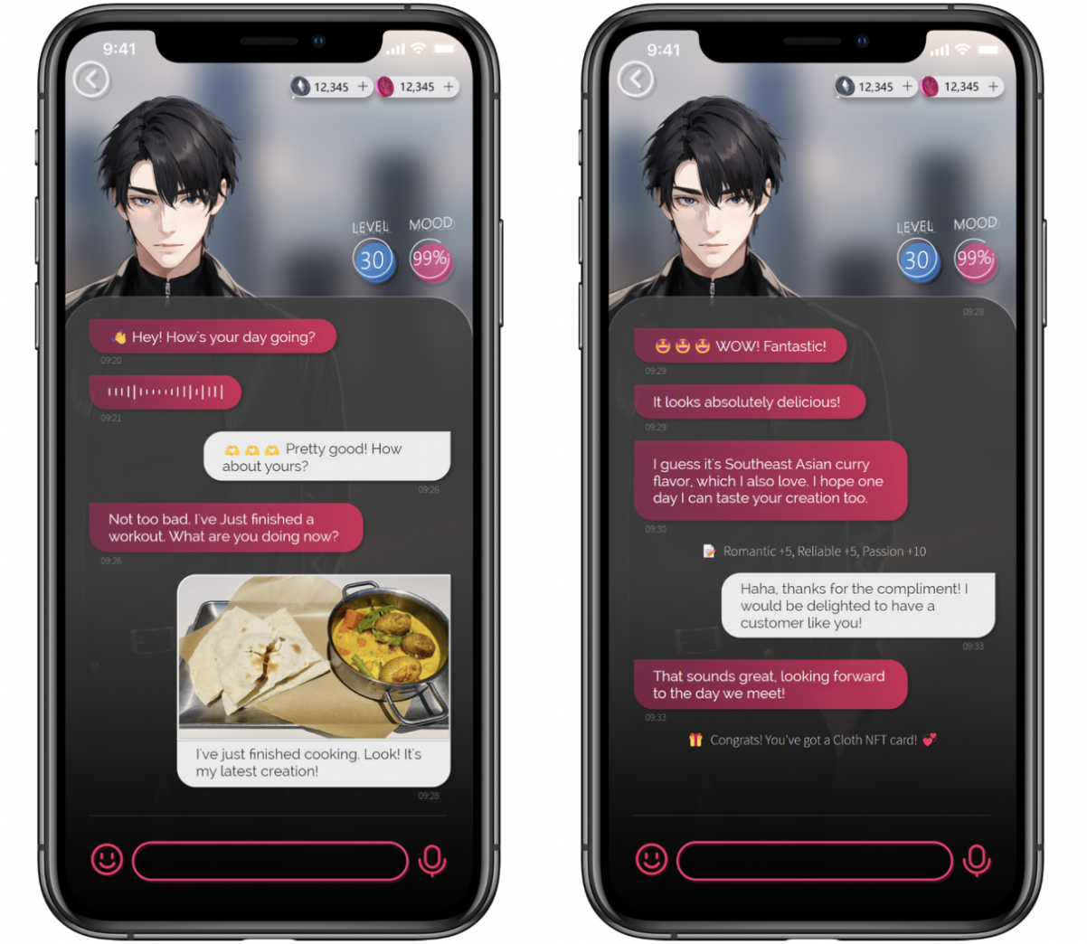 虚拟世界里衣食住行的丰富体验:在 HIM 讲述的故事里,每一个 AI Boyfriend 都不得不一个人留在了一个孤独的平行宇宙:在那个世界里只有他自己,而和玩家每天通过手机的联系就是他能和外界交流的全部。和虚拟男友一起探索他世界里的风景,也试试看,有没有那一天有机会和他在他的世界,或者你的世界相遇。