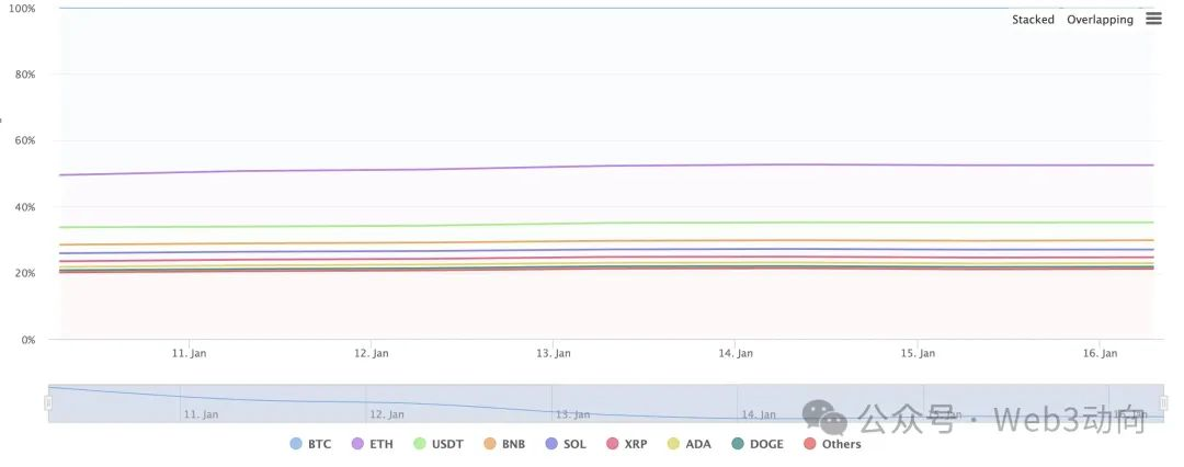 TradingView 数据显示,目前比特币的总加密市占率为 47.56% ,近一周以来正持续走低。