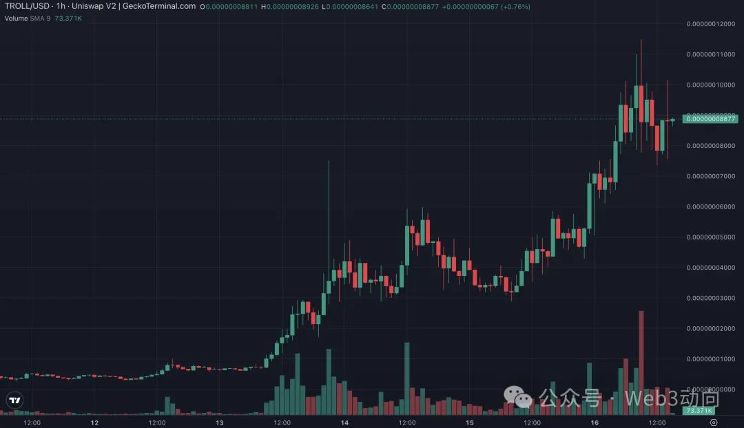 在短短一个周末之后,TROLL 价格已经上涨约 7 倍。