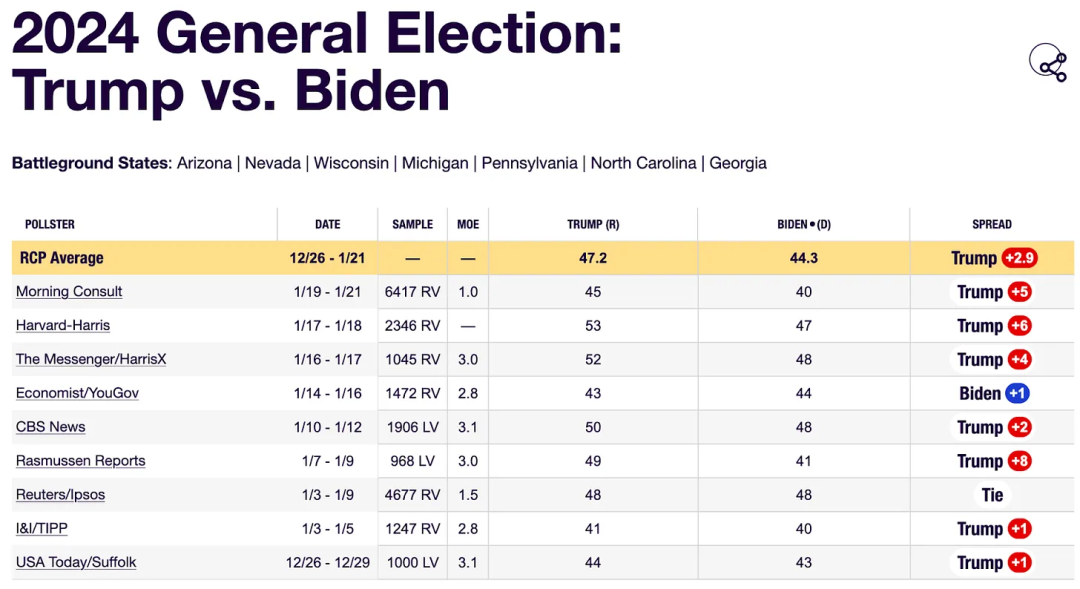 这就是为什么根据最新的民意调查,特朗普略微有可能击败拜登。