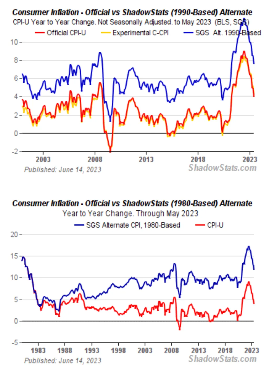 目前的消费者价格指数(CPI)计算方法是Fugazi。 如果我们回到 1980 年或 1990 年的 CPI 计算方法,实际通胀率约为 +10%,而你在新闻中读到的通胀率为 +3%。