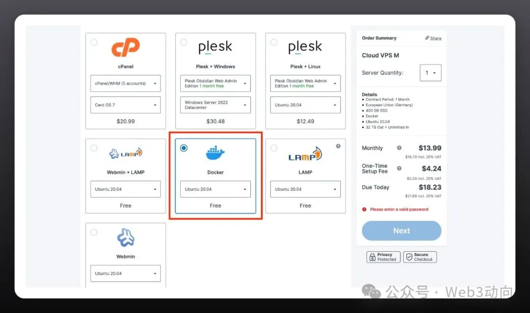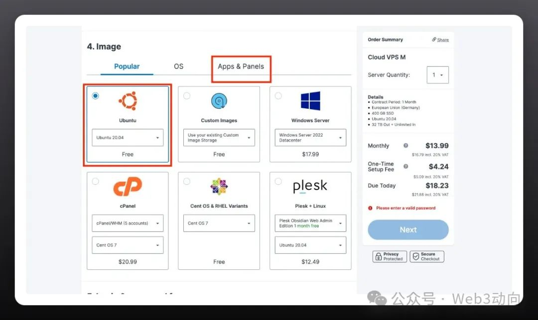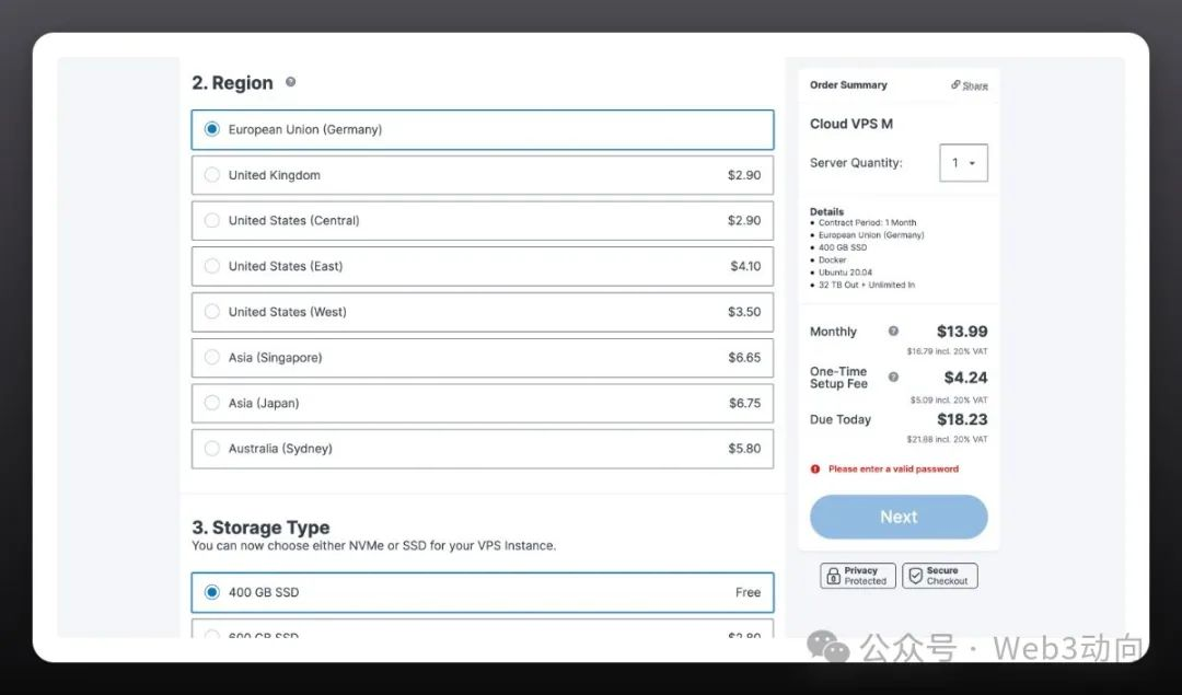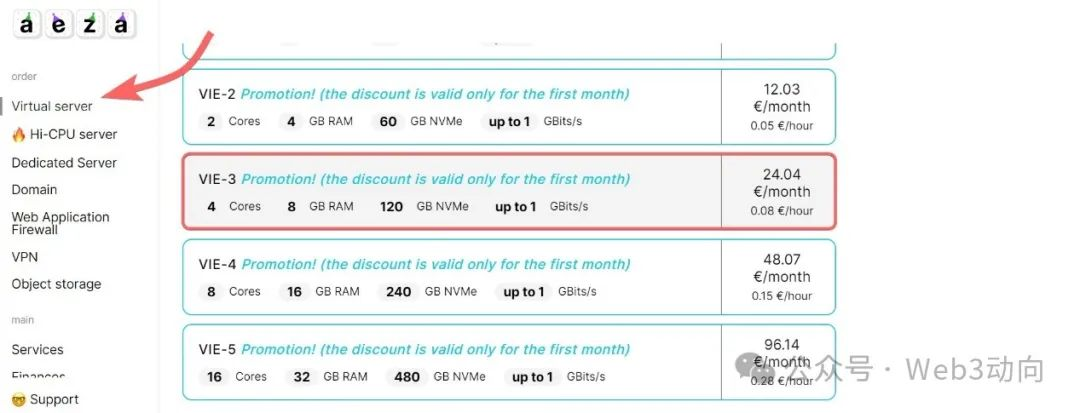 选择选项:虚拟服务器-->专用-->Vienna 3:4 Cores/8 GB RAM/120 GB SSD图片