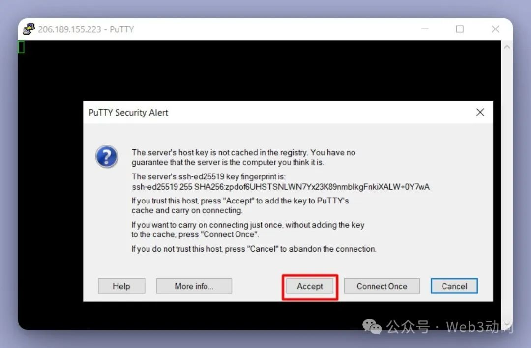 粘贴您服务器的IP 地址,然后单击“打开”和“接受”
