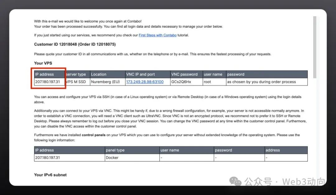 在15-60分钟内将收到一封包含VPS详细信息的电子邮件。