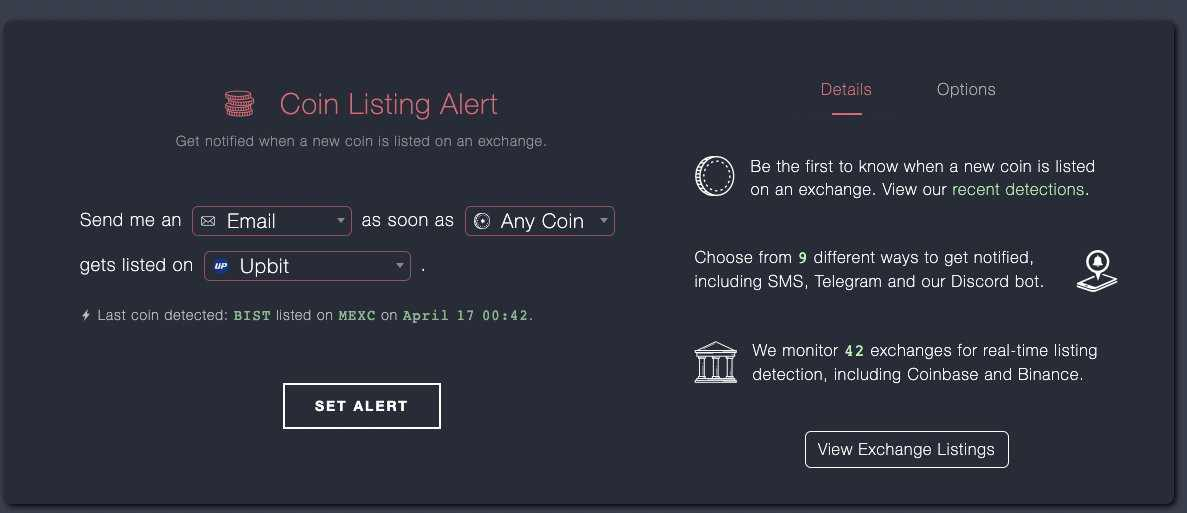通过使用 Crypto Exchange Listing Bot 来监测新上线的 token,该网站可以在新 token 上线时即时给用户发送相关信息(通过 Email、Tel、Dc 等方式),可以帮助你快速找到下一个 listing pump。