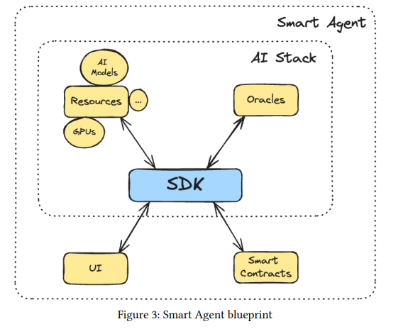 镜像对象之上则是 AI 堆栈,主要被用于使用 Talus 的 SDK 为 Talus 创建智能代理,以集成链下组件并集成资源和预言机。Talus SDK 由多个库以及可用于构建智能代理的数据模型和现成的智能合约组成。Talus AI Stack 有助于智能代理开发人员无缝访问必要的链下资源。