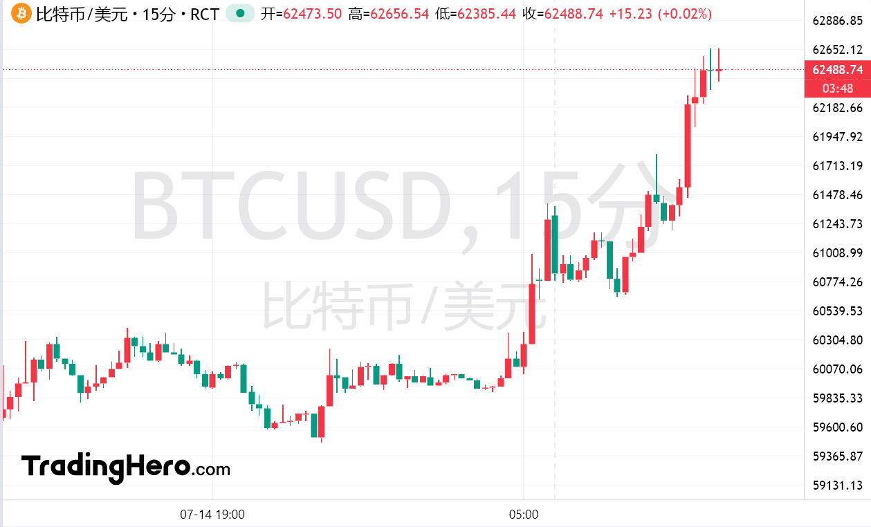 周一亚盘,比特币突破62000美元/枚,日内涨约2%,以太坊突破3300美元/枚,日内涨1.72%,均升至7月初以来高位。特朗普对暗杀企图的蔑视回应刺激了人们的猜测,这位支持加密货币的前总统赢得连任的可能性已经攀升。