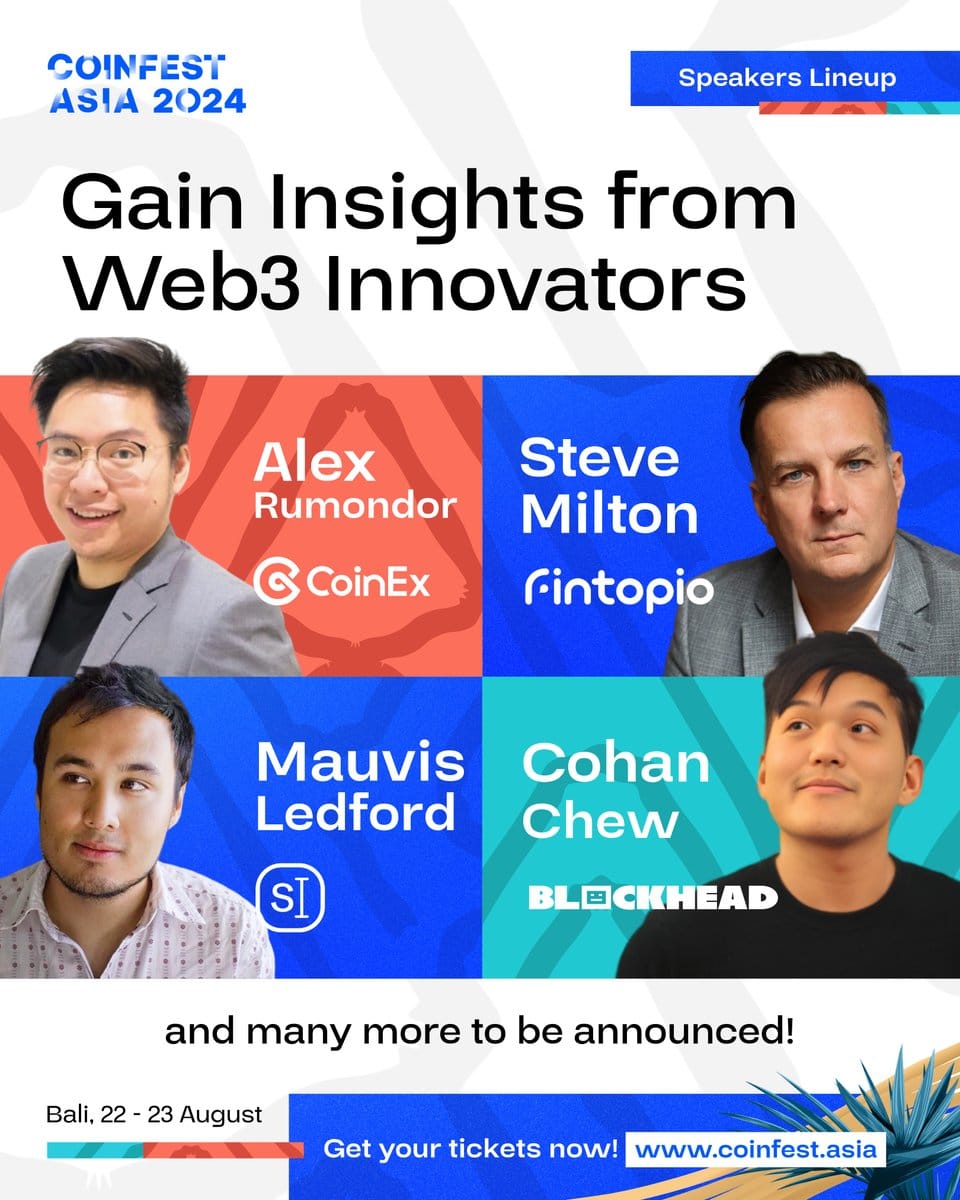 准备好在亚洲最大的Web3节上与来自2000多家公司的6000多人联系。立即使用Blockhead的10%折扣码获取门票:CA24BLOCKHEAD