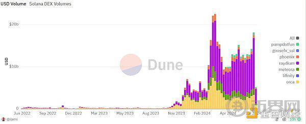 这些爆涨的Meme代币,不仅带来了丰厚的财富效应,更彻底点燃了Solana Meme生态的一团大火。这些也要归功于Solana生态内部已经形成的完善Meme发行和交易体系。从流动性共享平台Orca、Jupiter到DEX交易平台Raydium、Metaora等,再到全自动交易Bot,Solana上涌现了各种专门服务Meme项目的基础设施。