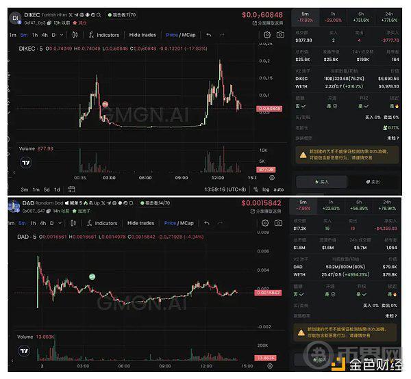 因为多重 meme 属性,使 Dikec 在币圈备受关注,该 meme 属性获得了很多注意力。目前相关标的有:$DIKEC 和 $DAD。