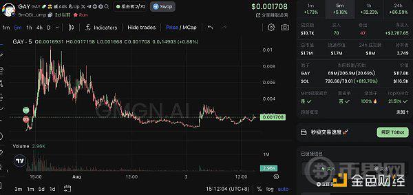 冲高到 8M 后,$gay 目前市值维持在 1.7M 附近,可以再观察根据市场热度判断后市的走向。