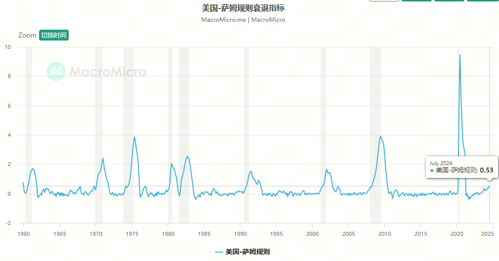 近期市场受美国经济走软影响,比特币(BTC)价格下滑,山寨币市场也随之下行。非农最新失业率计算,美国失业率从今年以来的低点飙升了0.6%,失业率连续超预期激增数月后,终于触发了基于失业率预测衰退的“萨姆规则”。