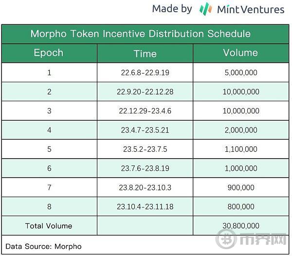 Morpho的代币激励是分批次,按季度或月份决定的,这让治理团队可以根据市场的变化灵活调整激励的力度和具体策略。