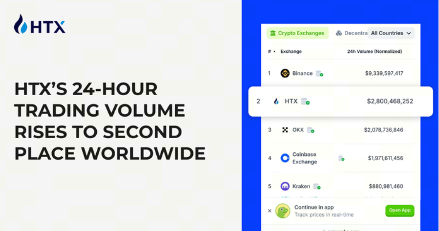 火币HTX 24小时交易量升至全球第二位,多个优质资产首发上线