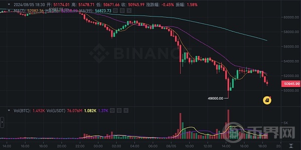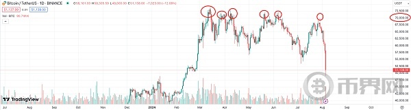 2024年8月5日,注定将被载入史册。在上周末美国7月非农数据远不及预期和失业率意外飙升之下,市场开始担心美国经济将陷入衰退。经过了周末短暂的「相安无事」,周一亚洲金融市场开盘就遭到了血洗,日韩股市相继触发熔断,比特币则从今日凌晨4时的接近6万美元一路下跌至4.9万美元。