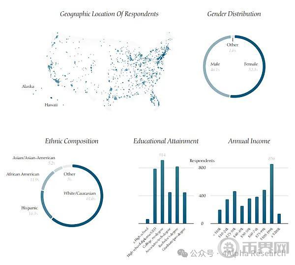 虽然其他机构也曾进行过类似方向的研究,但这些研究通常存在一些局限性,例如样本量较小、研究范围过于宽泛或仅关注于少数几个指标。此外,大多数研究主要讨论的是加密货币整体,而非专注于比特币。因此,The Nakamoto Project 在这份报告中特别聚焦于比特币,并且将研究范围限制在美国。