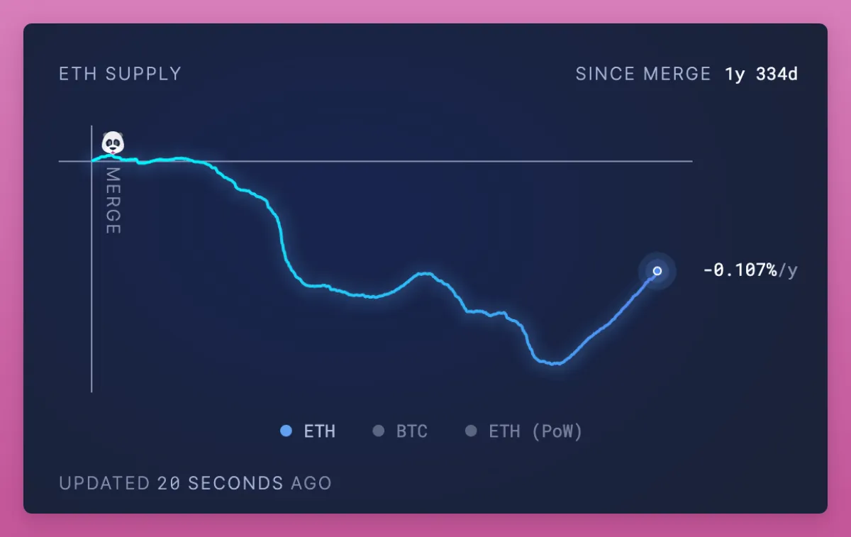 在 EIP-4884 Proto-danksharding 升级之后,L2 支付的费用下降,导致 ETH 销毁量降低。尽管 ETH 通胀率仍低于 1%,但对于那些看好 ETH 作为超声波货币的人来说,它失败了。
