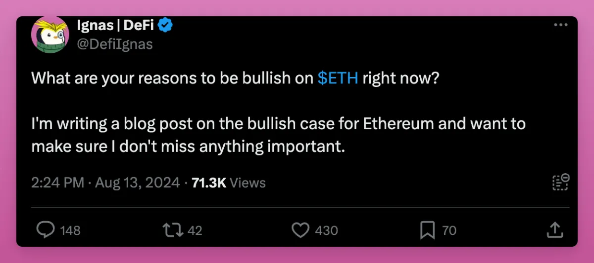 有很多理由对以太坊持乐观态度,我请 X 上的粉丝分享了一些他们的观点。