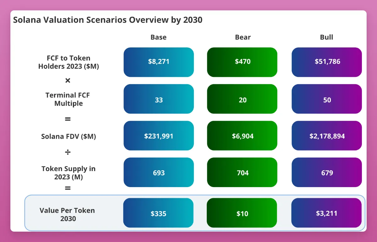 老实说,1.18 万美元是相当悲观的(我希望它在 5 年后就能达到更高的价格),但请记住,VanEck 对 2030 年 Solana 的基础价格预测是 335 美元。