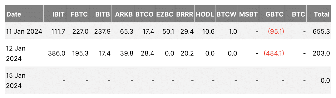 2024年1月11日多个现货比特币ETF上市当日,Bitwise的BITB录得2.379亿美元资金流入,富达的FBTC则获得2.27亿美元流入。