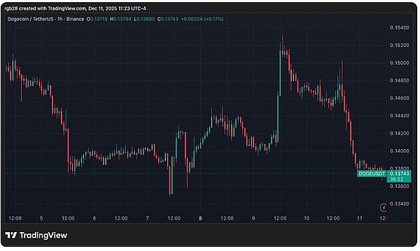 狗狗币(DOGE)这波跌得有点狠!日线直接砸了 5.5%,周线更惨,跌超 8%,现价 0.137 美元,又回到了 0.136-0.138 美元的老区间躺平。第四季度以来都快腰斩了,一直在 0.13-0.155 美元之间来回晃,本想这周冲一波,结果周三被美联储消息带崩,盘中跌 4.6%,直接打回原形~