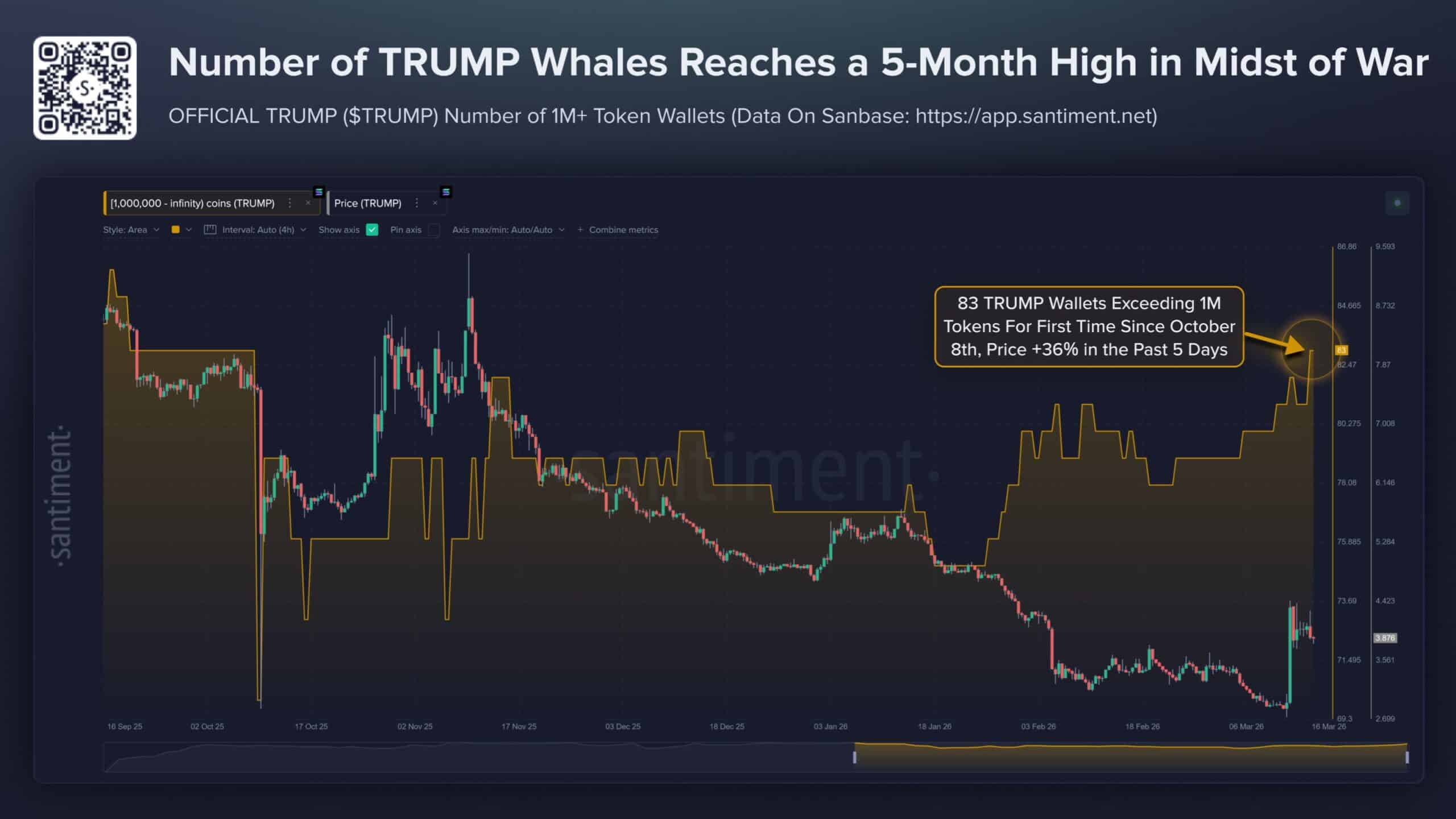 - 随着价格飙升36%,TRUMP鲸鱼在过去几天加剧了吸筹活动