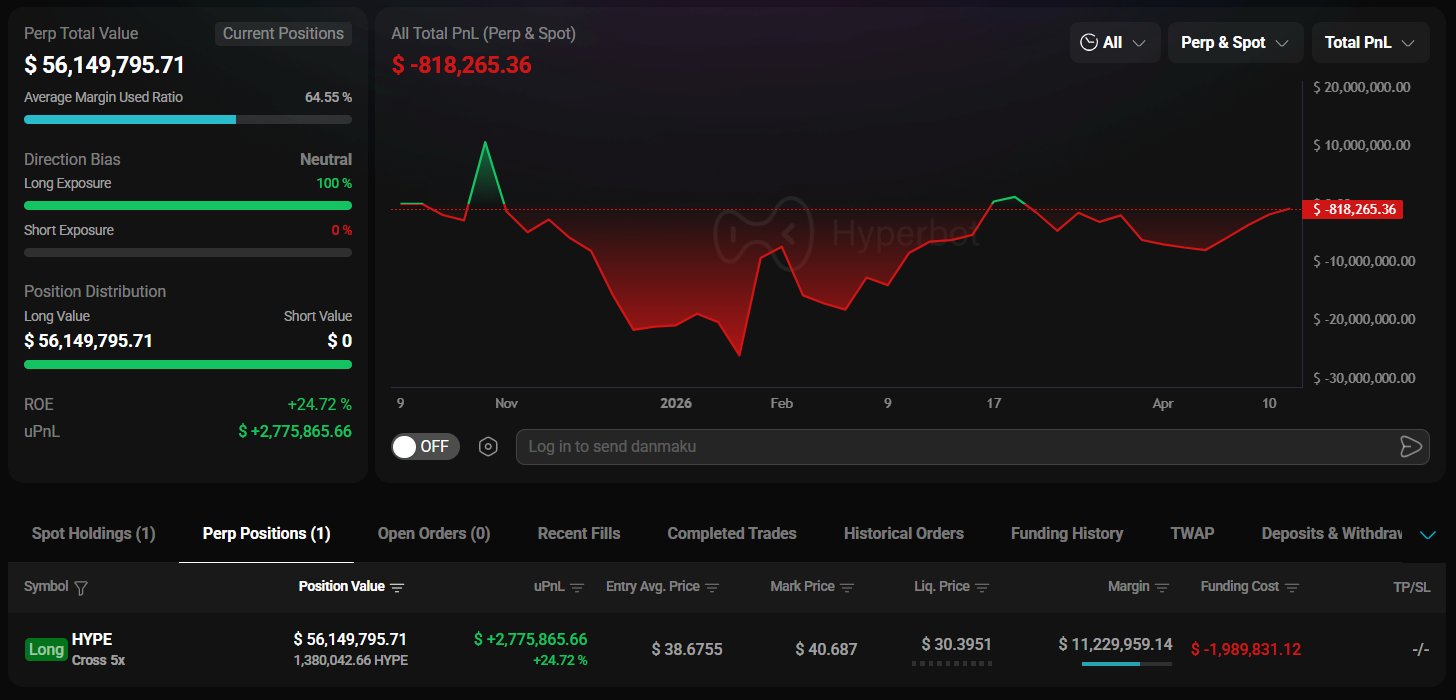 但随着HYPE现报40美元上方,该鲸鱼浮动利润已超277万美元。这种坚守亏损仓位五个月的决心显示出对市场的信心。