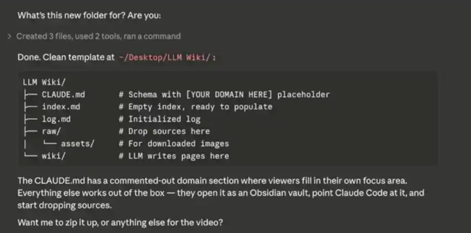 接下来你可以告诉 Claude Code:「我刚刚在 Obsidian 里添加了 [x],请帮我把这些内容整合进我的 Wiki。」
