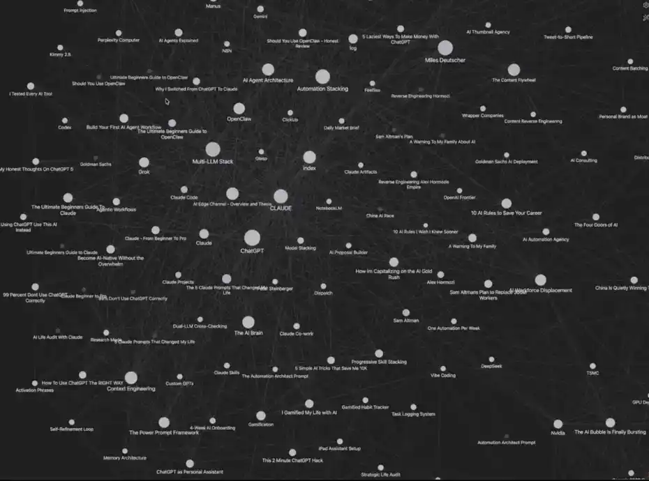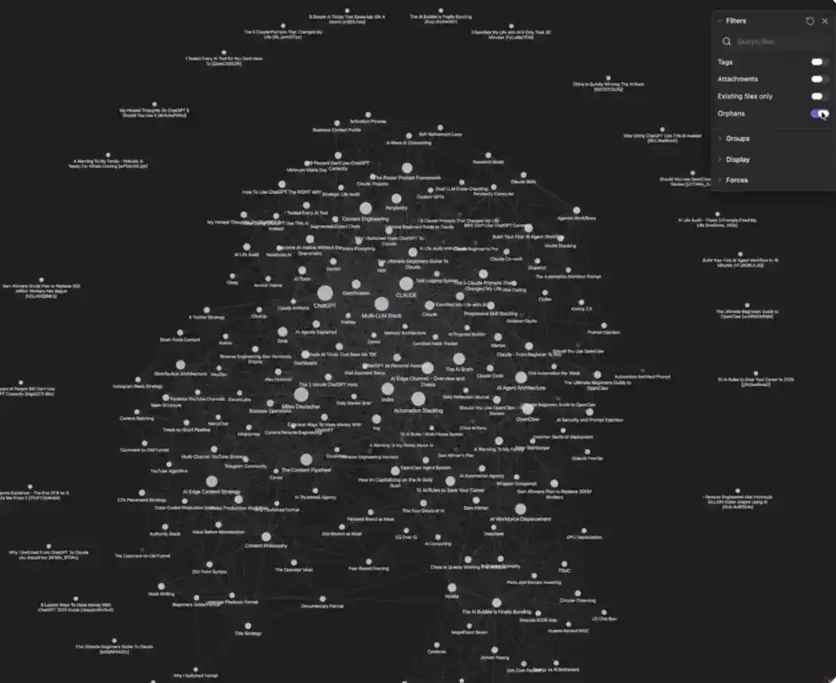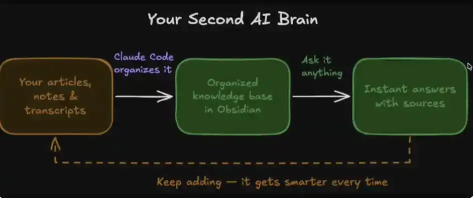 Claude Code 会自动将这些新数据与已有内容建立关联、生成链接,让它真正融入你的「第二大脑」。这也是这套工具组合强大的原因所在。