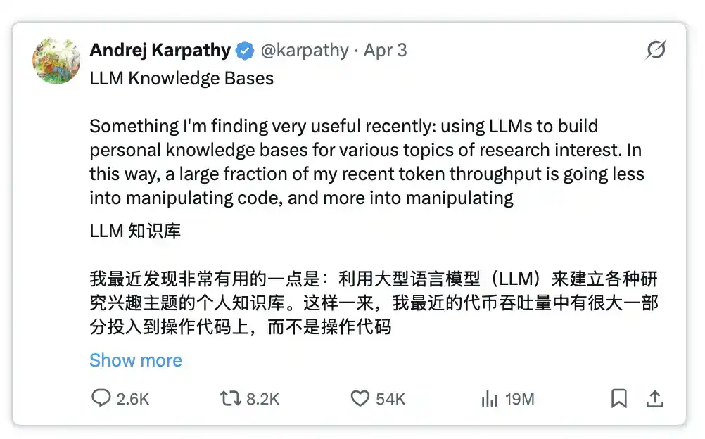 相关阅读:https://x.com/karpathy/status/2039805659525644595