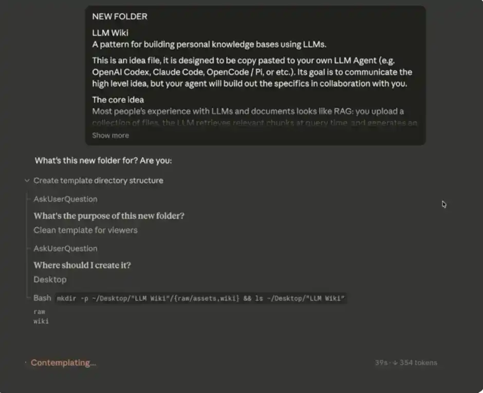 当你选好文件夹之后,下一步就是把 Andrej Karpathy 的系统提示词粘贴到主聊天框中。