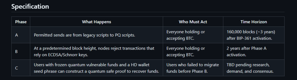该完整提案是一个三阶段计划,旨在保护比特币免受一个悄然加剧的威胁:量子计算机最终破解保护早期比特币地址的加密密钥的能力。