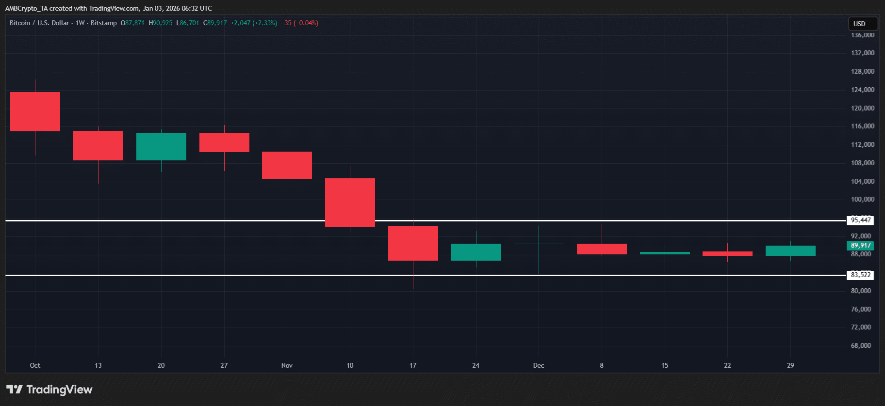 但数据真的支撑这一观点吗?从技术面来看,比特币 [BTC] 在 2026 年开局即录得 2.8% 涨幅,历经六周横盘整理后,成功重新站上 9 万美元关口,这进一步为 “底部已现” 的论调提供了佐证。