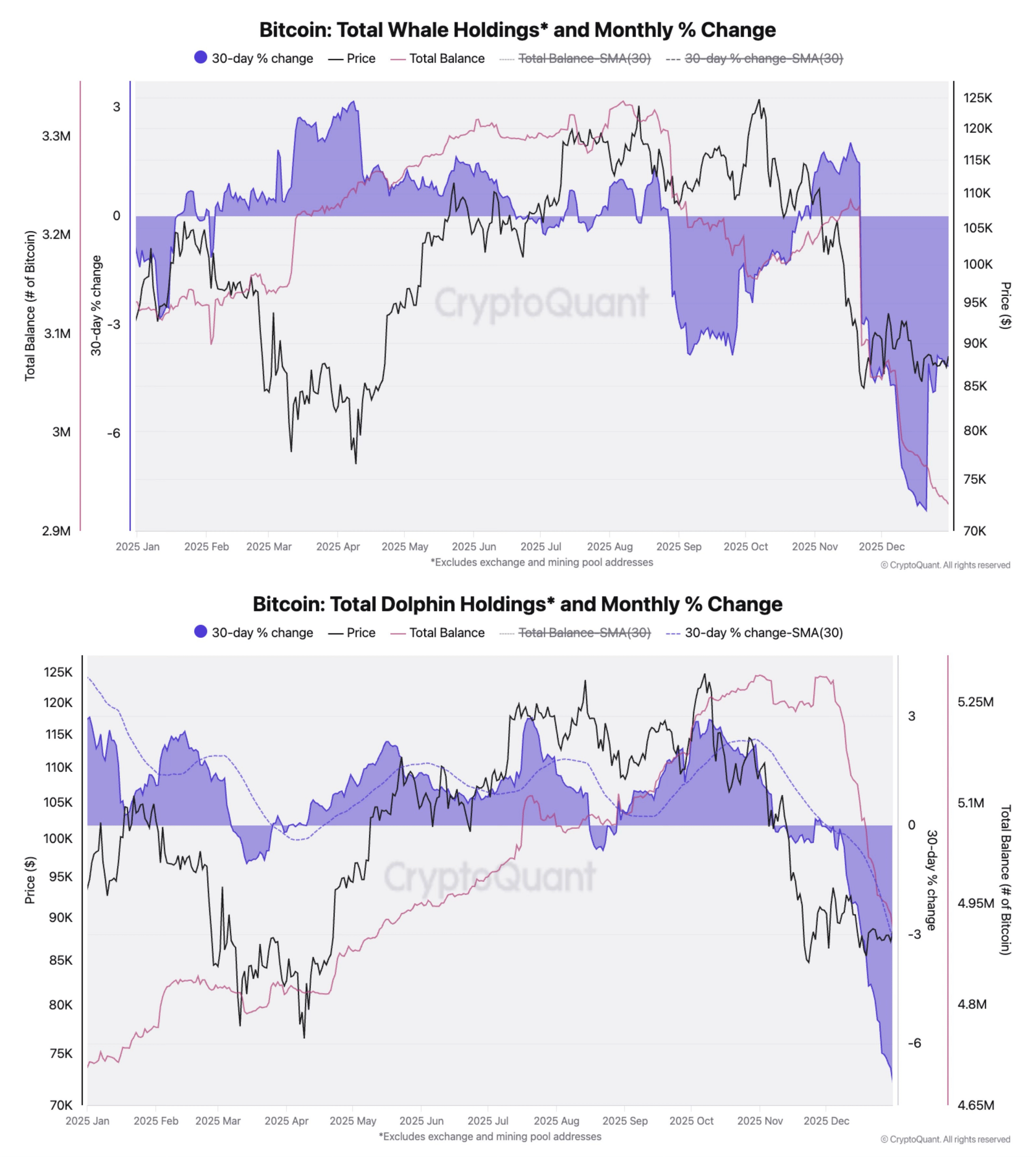 因此,当前亟待确认的是,链上数据是否真正支撑当下的多头仓位布局。如果答案是否定的,那么任何突发的市场变动都可能引发连锁反应,将市场情绪指数重新拉回恐惧区间。再叠加比特币鲸鱼地址的异动频繁,市场崩盘的风险真实存在。