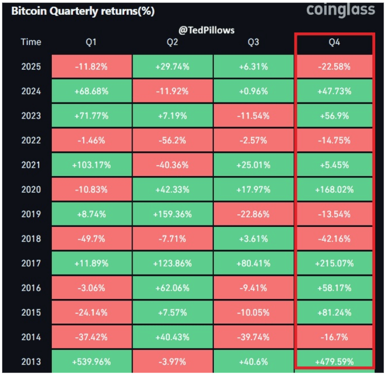 这一看涨趋势在第四季度开始时瓦解,始于10月10日的加密市场闪崩事件。此后跌势持续扩大,比特币及更广泛的加密市场现已跌破2025年开盘水平。
