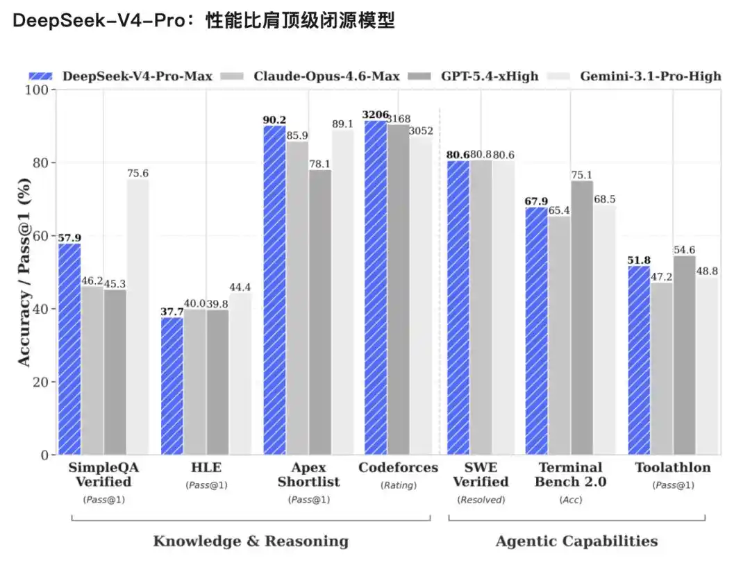 V4-Pro,性能比肩顶级闭源模型。